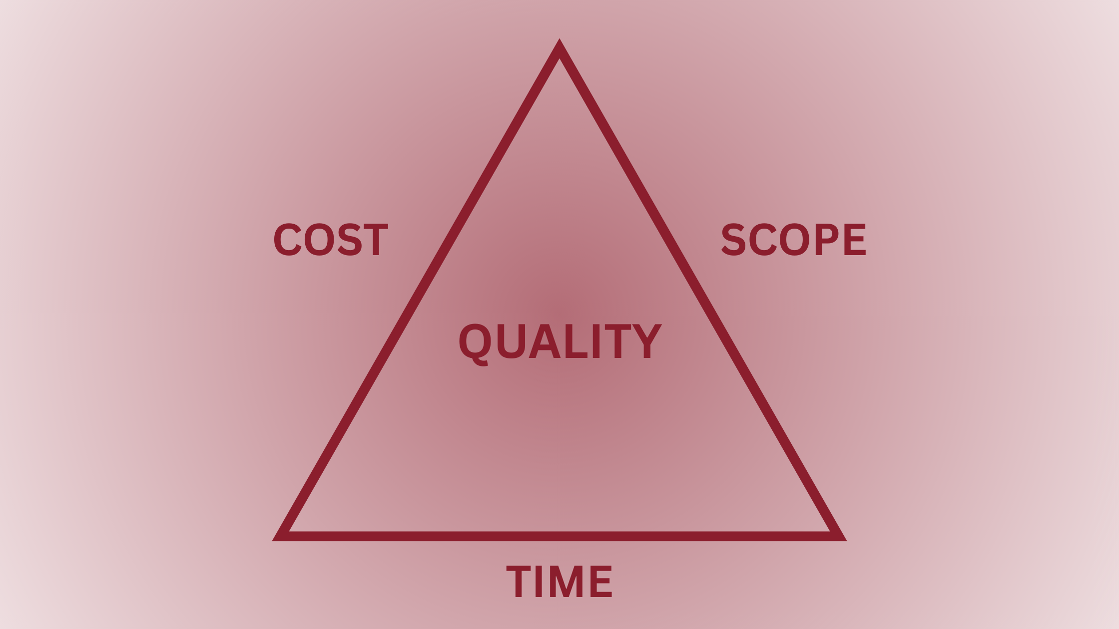 The Project Management Triangle shows how scope, time, and cost trade off against each other while quality sits in the middle, influenced by all three.